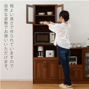 収納部分も、可動棚で自由な収納が可能で、家電が置きやすいスペース・家電が使いやすくなるスライド棚部分がございます。