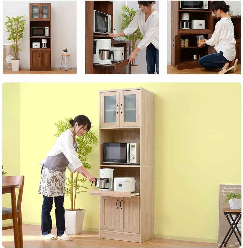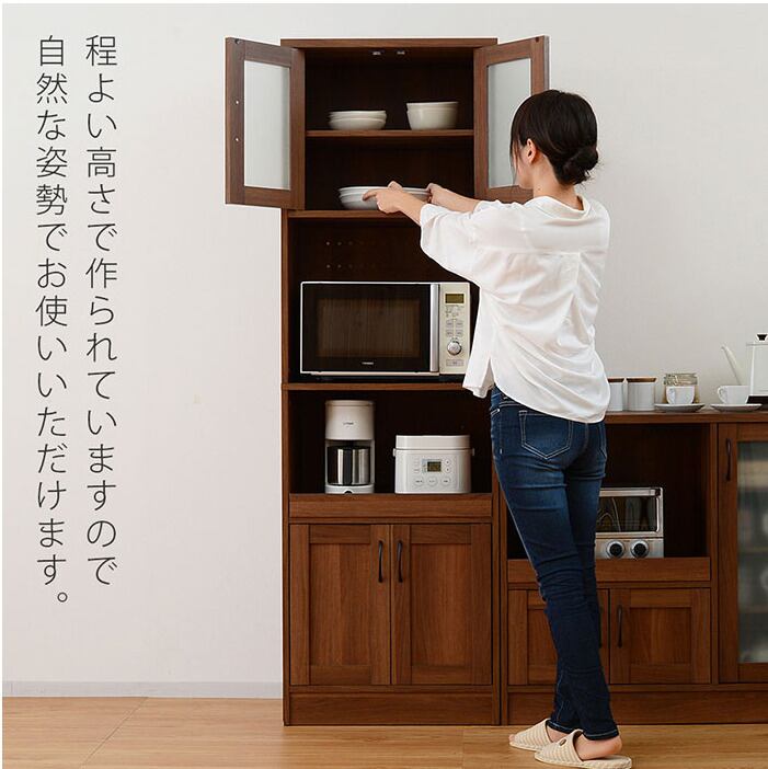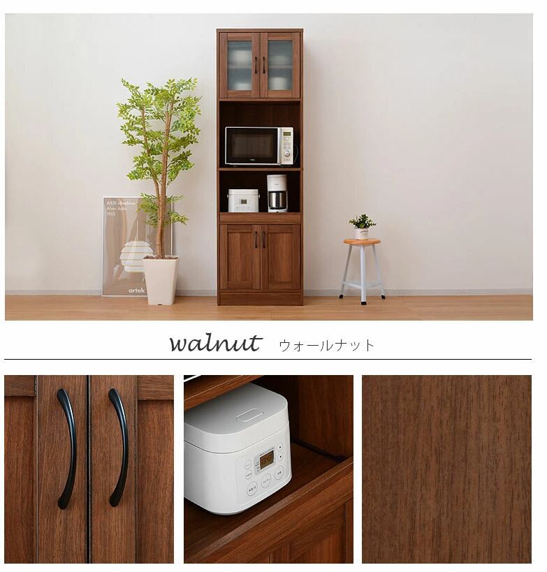 家電棚ハイタイプ レンジ台 食器棚 幅60cm おしゃれ 北欧 キッチンラック ウォールナット