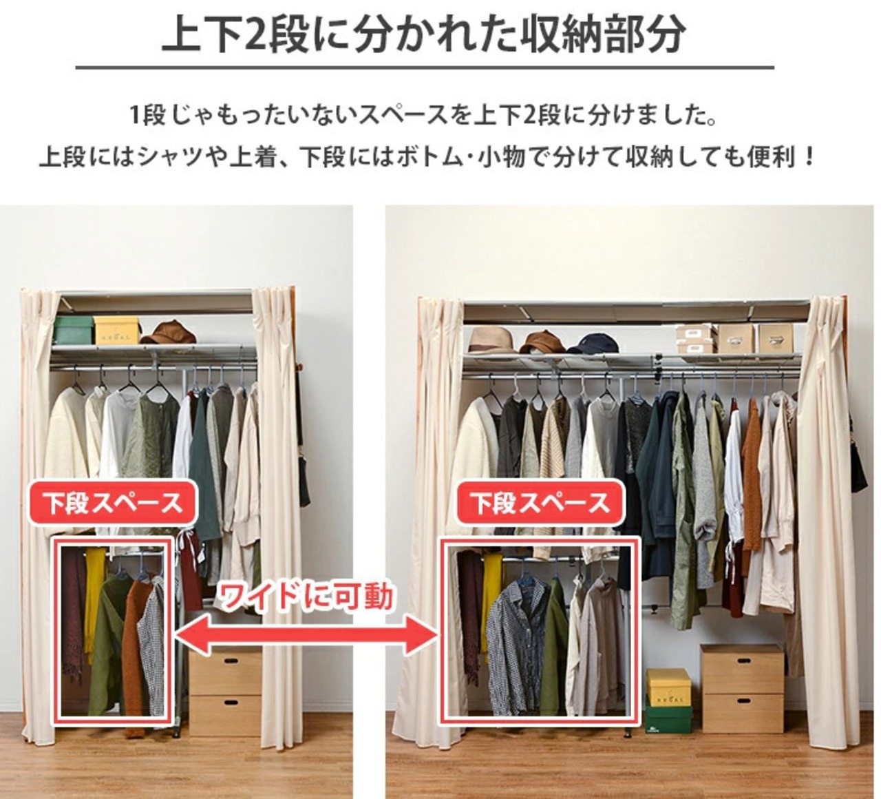 ワードロープ ハンガーラック 伸縮可能 カーテン クローゼット ナチュラル