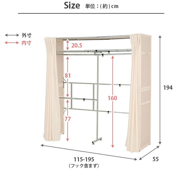 (約)幅115-195(フック含まず)×奥行55×高さ194cm