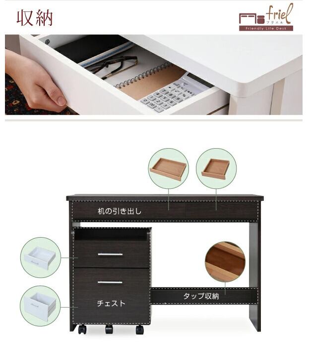 システムデスク チェスト付き ワークデスク チェスト 2点セット ホワイト