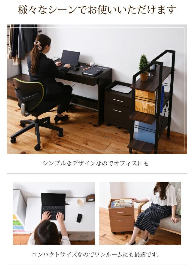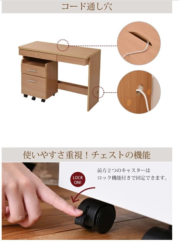 シンプルなデスクにチェストが付いたセットアイテム。