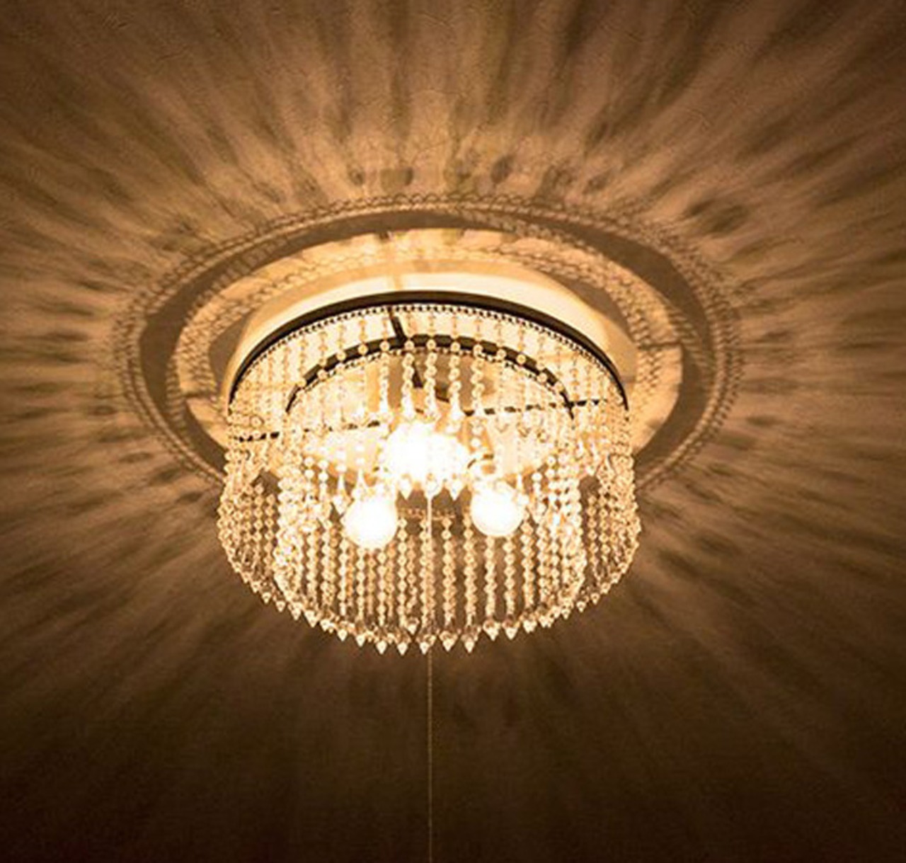 美しいカッティングが施されたクリスタル調ビーズが輝くシャンデリア。