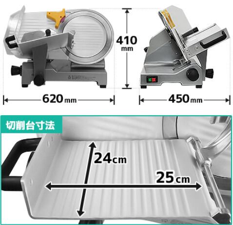 最高品質イタリア製の回転刃に衛生的なアルミボディを採用した業務用ミートスライサーです。