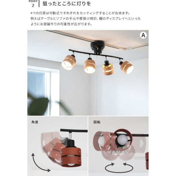 シーリングライト ブラウン 6畳 8畳 北欧 4灯 天井照明 リビング 寝室 スポットライト