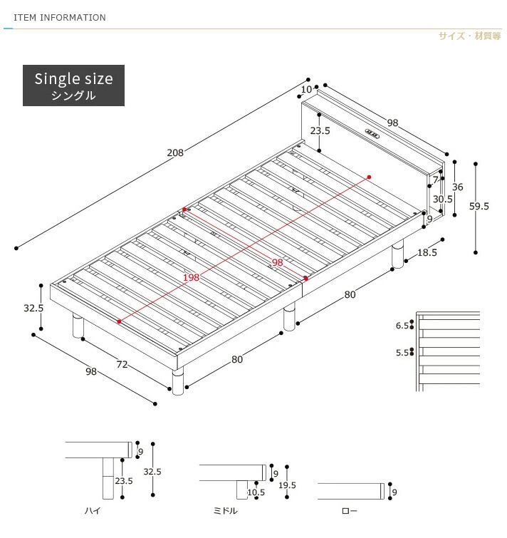 ベッド下高さ(下位設定)0・(中位設定)10.5・(上位設定)23.5cm