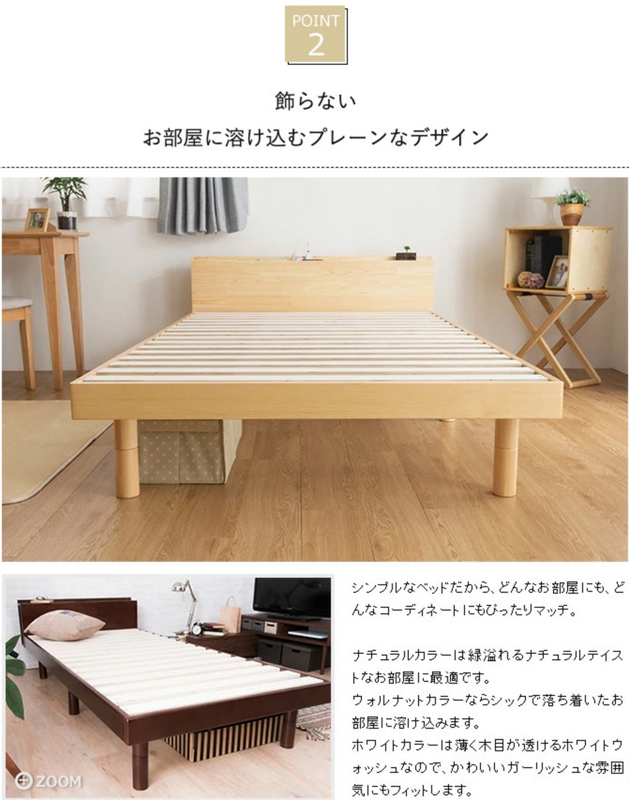 コンセント付き すのこベッド ナチュラル シングル 宮棚 頑丈 天然木フレーム