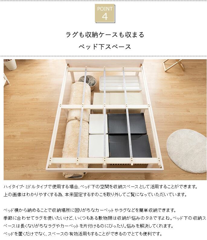 ○ラグなど長物や収納ケースも収まるたっぷりベット下スペース。